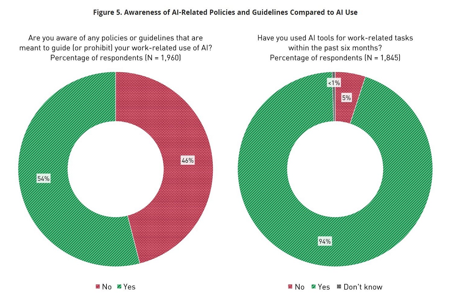 Leadership awareness exists but has not translated into coordinated strategy. Ethical and pedagogical norms are being set informally by users, not institutions. Institutions and their leaders describe themselves as “not ready.” However, individual users behave as if systems and procedures for incorporating AI are already in place.