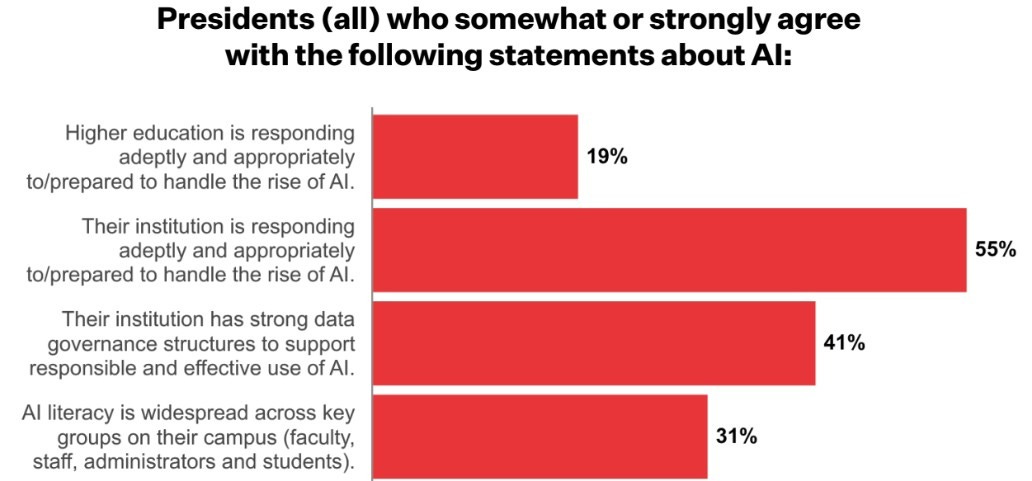The surveys show that only 55 percent of presidents believe their institution is responding appropriately to AI. Do you have a good sense if your institution’s leadership places you in that group and why?